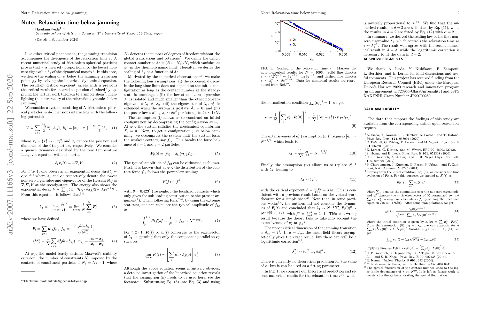 The research derives the scaling of λ1, the lowest non-zero eigenvalue of the dynamical matrix, below the jamming transition point φ_J by solving the linearized dynamical equation for a system of frictionless spherical particles.
