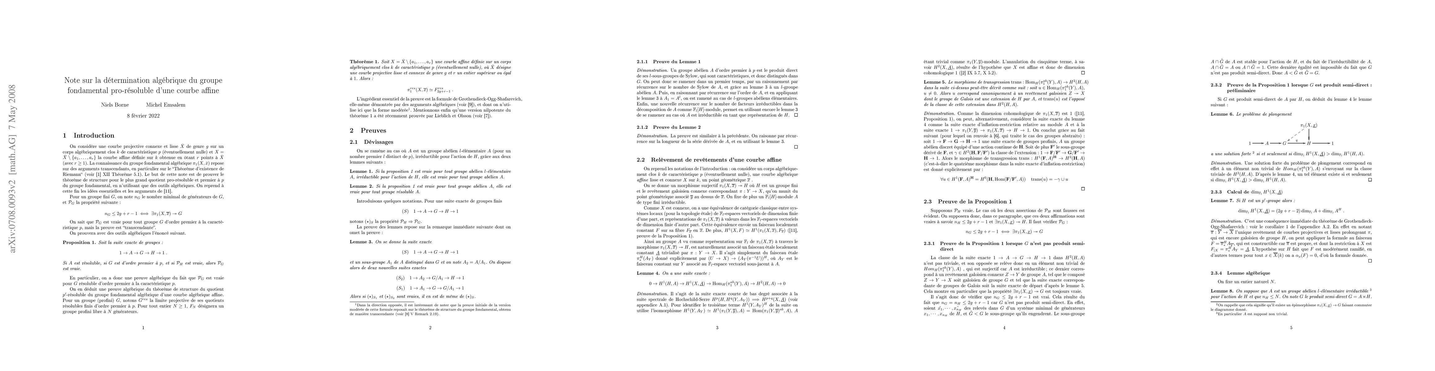 Let X be a smooth projective algebraic curve of genus g minus $r\geq 1$ points defined over an algebraically closed field k of characteristic $p\geq 0$. The structure of the largest prime to p quotient of the \'etale fundamental group is well known by transcendental methods : it is isomorphic to the largest prime to p quotient of a free pro-finite group on 2g+r-1 generators. We show that, with purely algebraic means, we can prove the corresponding result for the largest pro-solvable quotient of these groups.