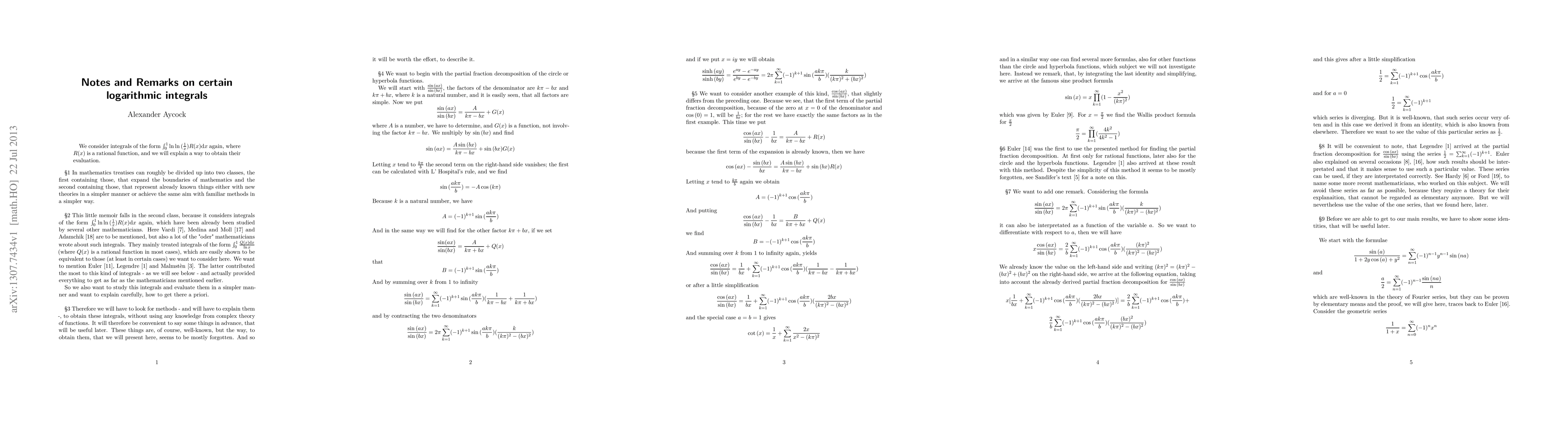 Summary: This paper revisits integrals of the form $\int_0^1 \ln{\ln{(\frac{1}{x})}}R{(x)}{\rm d}x$ where $R{(x)}$ is a rational function, and presents a method to determine their exact values.