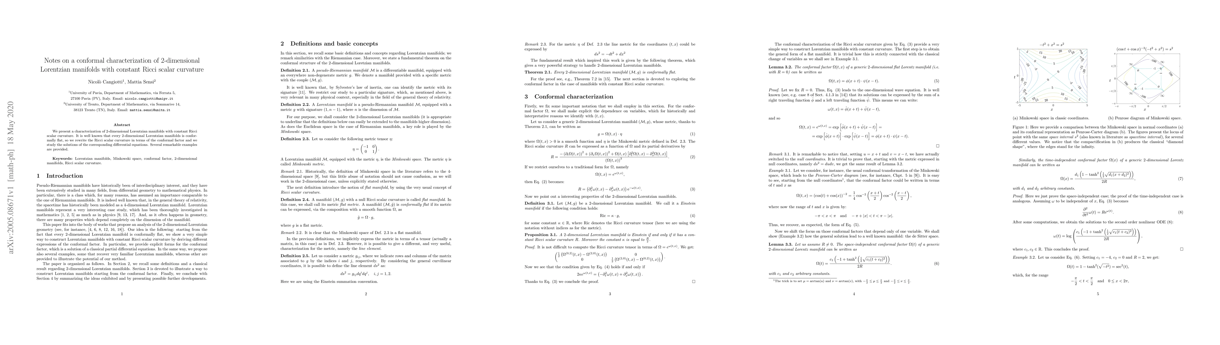 This paper characterizes $2$-dimensional Lorentzian manifolds with constant Ricci scalar curvature, leveraging the known fact that such manifolds are conformally flat by expressing the Ricci scalar in terms of the conformal factor and solving relevant differential equations. Notable examples are discussed to illustrate the findings.