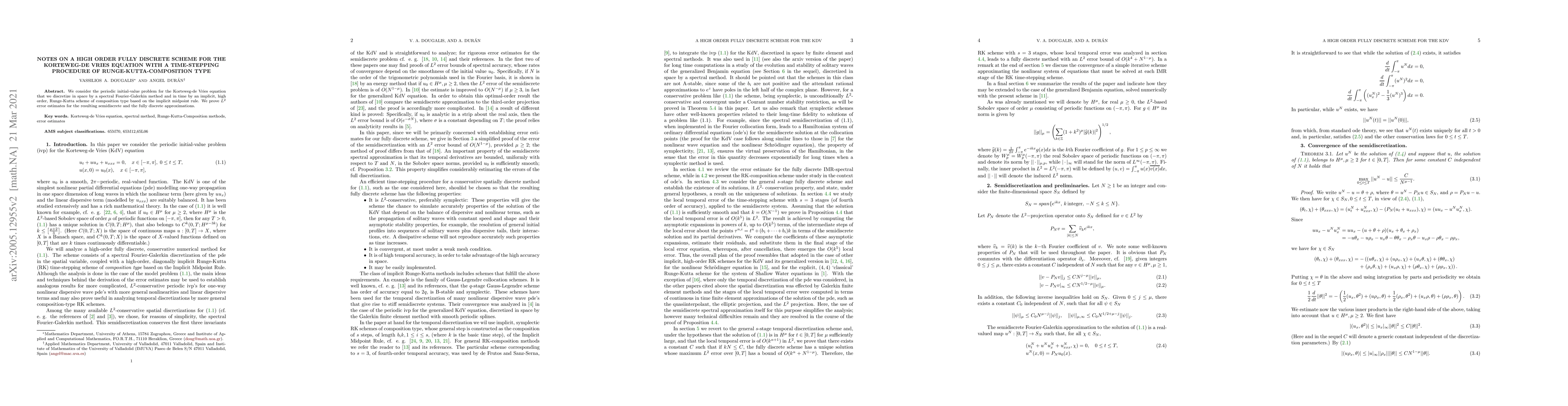 This paper proposes a high-order fully discrete scheme for solving the Korteweg-de Vries equation using a spectral Fourier-Galerkin method in space and a Runge-Kutta-composition type time-stepping procedure. It provides $L^{2}$ error estimates for both semidiscrete and fully discrete approximations.