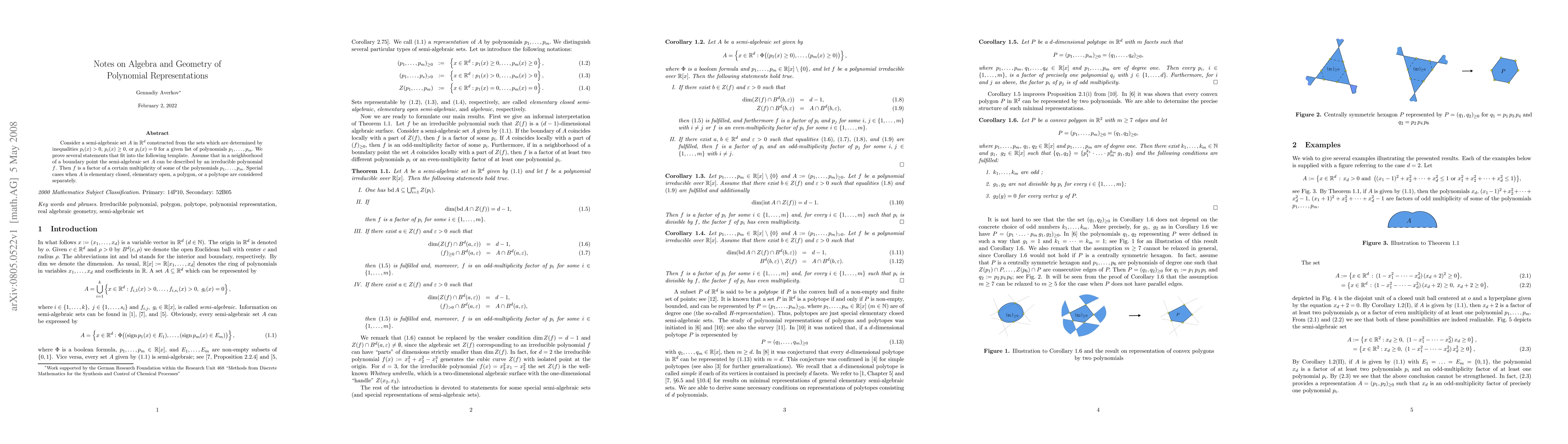 Consider a semi-algebraic set A in R^d constructed from the sets which are determined by inequalities p_i(x)>0, p_i(x)\ge 0, or p_i(x)=0 for a given list of polynomials p_1,...,p_m. We prove several statements that fit into the following template. Assume that in a neighborhood of a boundary point the semi-algebraic set A can be described by an irreducible polynomial f. Then f is a factor of a certain multiplicity of some of the polynomials p_1,...,p_m. Special cases when A is elementary closed, elementary open, a polygon, or a polytope are considered separately.