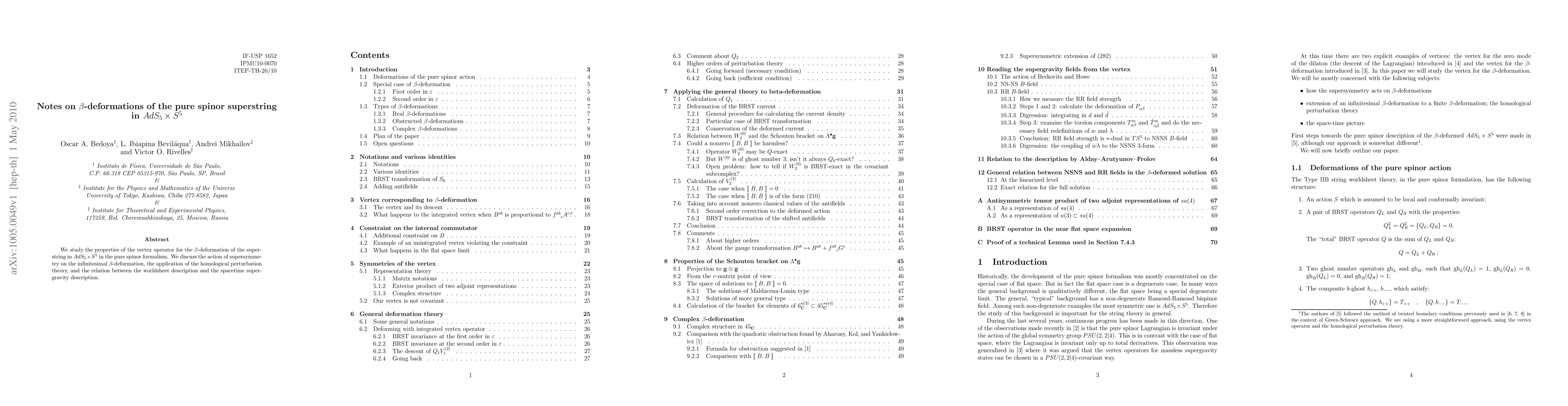 This paper investigates the vertex operator for beta-deformations of the superstring in AdS(5) x S(5) using the pure spinor formalism, focusing on supersymmetry actions, homological perturbation theory, and connections between worldsheet and spacetime supergravity descriptions.