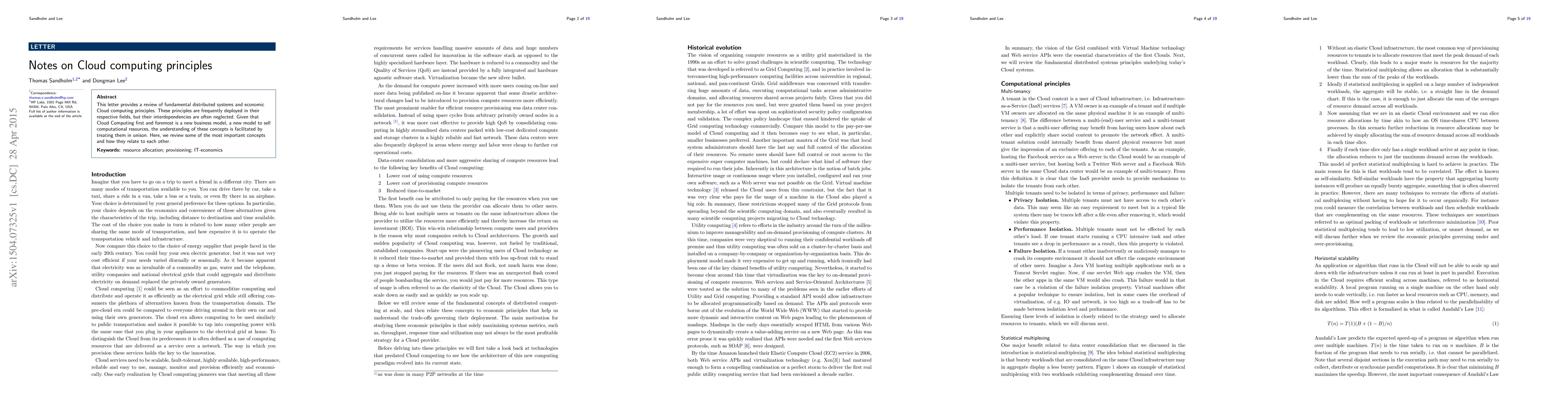 This letter provides a review of fundamental distributed systems and economic Cloud computing principles. These principles are frequently deployed in their respective fields, but their inter-dependencies are often neglected. Given that Cloud Computing first and foremost is a new business model, a new model to sell computational resources, the understanding of these concepts is facilitated by treating them in unison. Here, we review some of the most important concepts and how they relate to each other.
