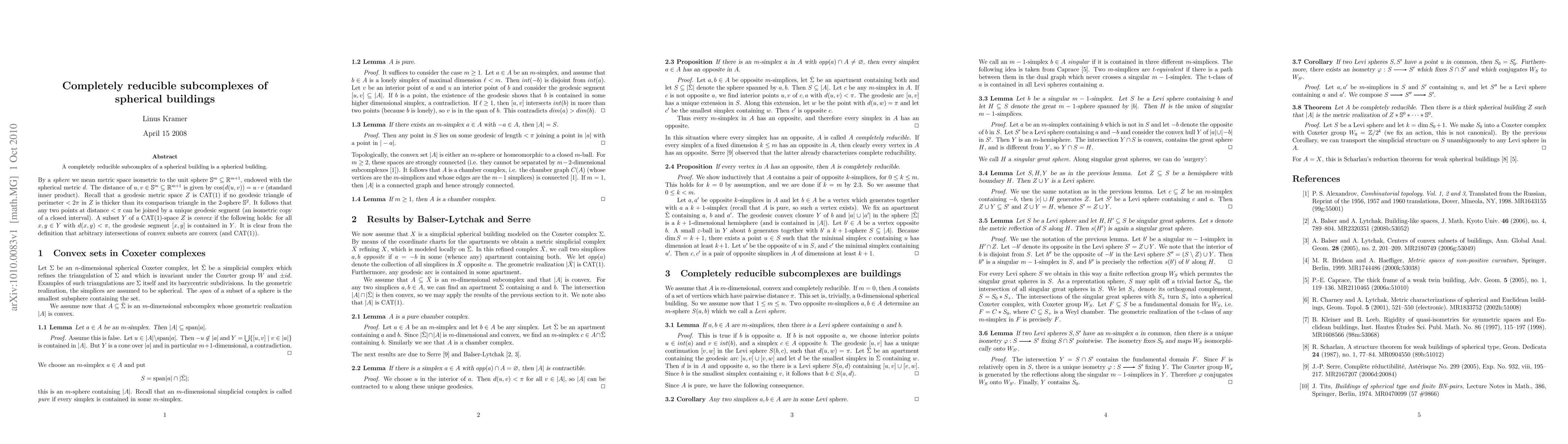 A completely reducible subcomplex of a spherical building is a spherical building.