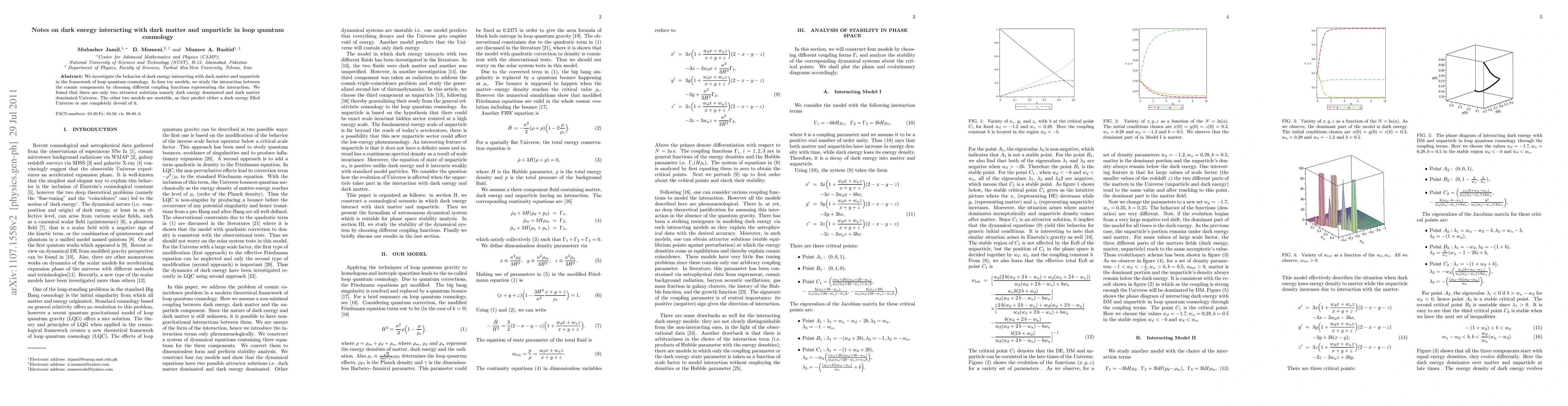 This paper explores the interaction between dark energy, dark matter, and unparticles in loop quantum cosmology through four toy models. The study reveals two stable attractor solutions: a dark energy dominated universe and a dark matter dominated universe, while the other models are unstable.