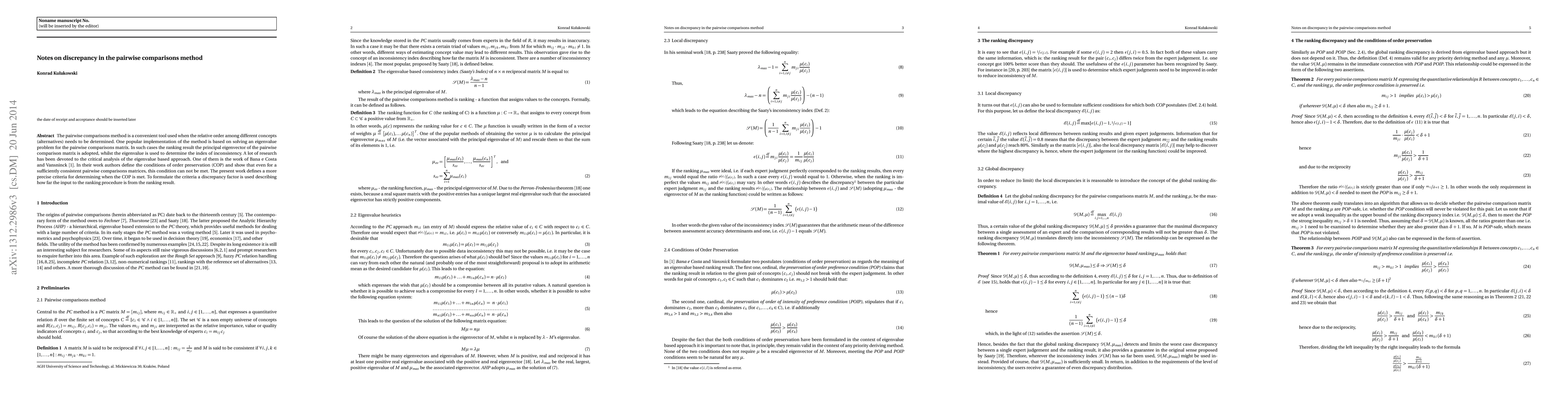 This paper examines the discrepancies in the pairwise comparisons method, particularly focusing on the eigenvalue-based approach used to determine rankings. It introduces a more precise criterion for assessing when the conditions of order preservation (COP) are met, utilizing a discrepancy factor to measure the deviation between input data and the resulting ranking.
