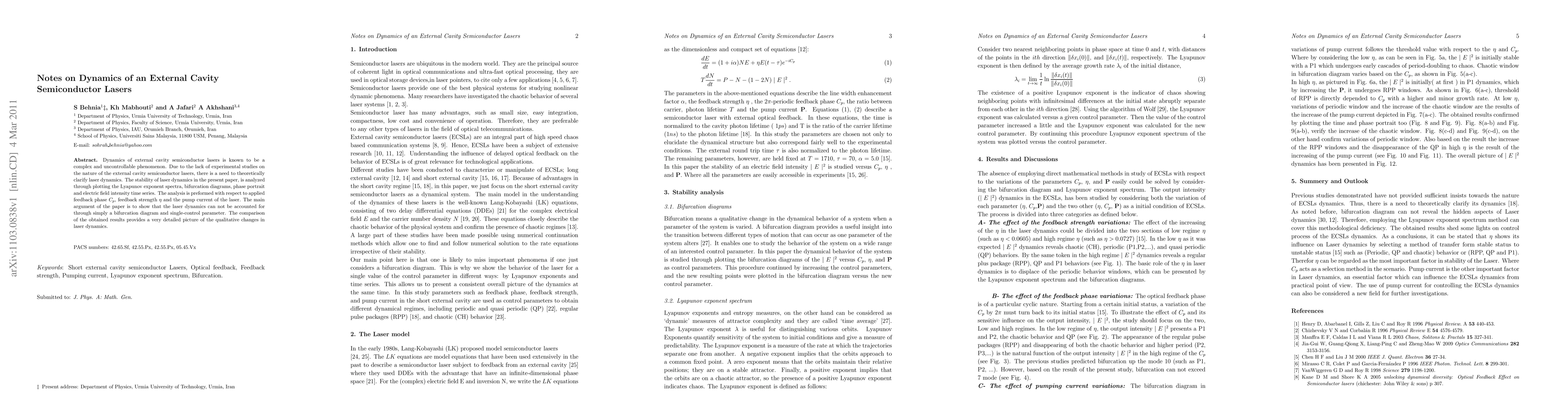 This paper analyzes the complex dynamics of external cavity semiconductor lasers using Lyapunov exponent spectra, bifurcation diagrams, phase portraits, and electric field intensity time series. It demonstrates that laser dynamics cannot be fully explained by a single bifurcation diagram or control parameter, highlighting the need for a comprehensive analysis of multiple factors.