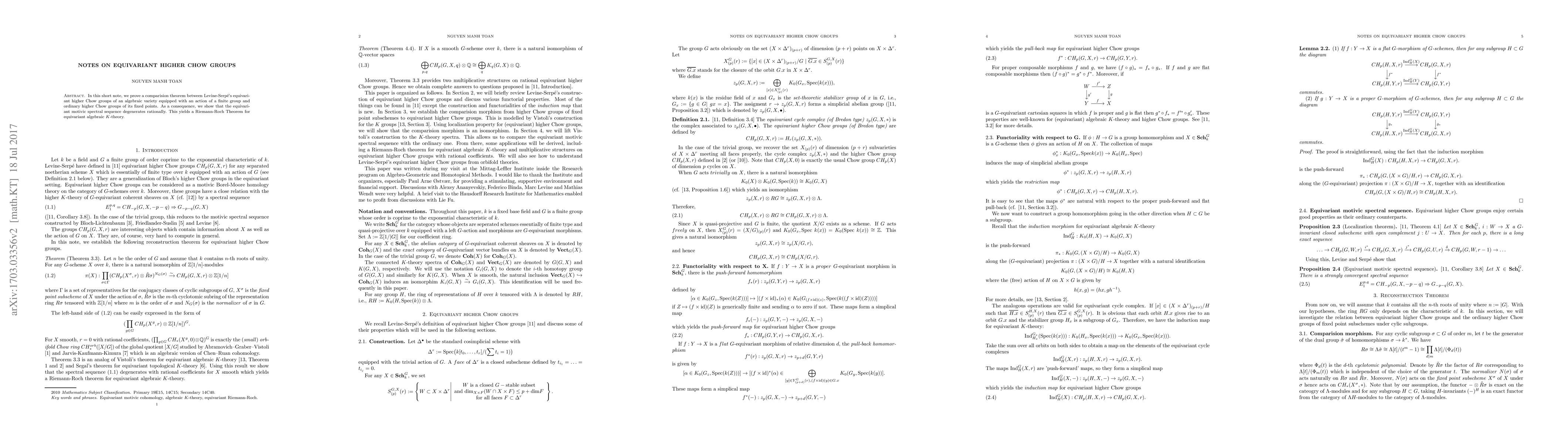 In this short note, we prove a comparision theorem between Levine-Serp\'e's equivariant higher Chow groups of an algebraic variety equipped with an action of a finite group and ordinary higher Chow groups of its fixed points. As a consequence, we show that the equivariant motivic spectral sequence degenerates rationally. This yields a Riemann-Roch Theorem for equivariant algebraic $K$-theory.