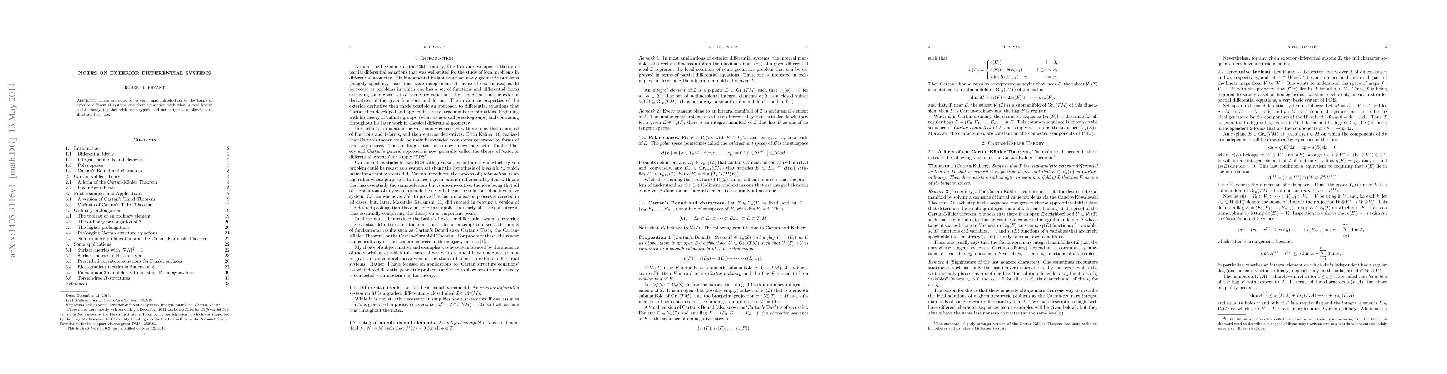 These are notes for a very rapid introduction to the basics of exterior differential systems and their connection with what is now known as Lie theory, together with some typical and not-so-typical applications to illustrate their use.