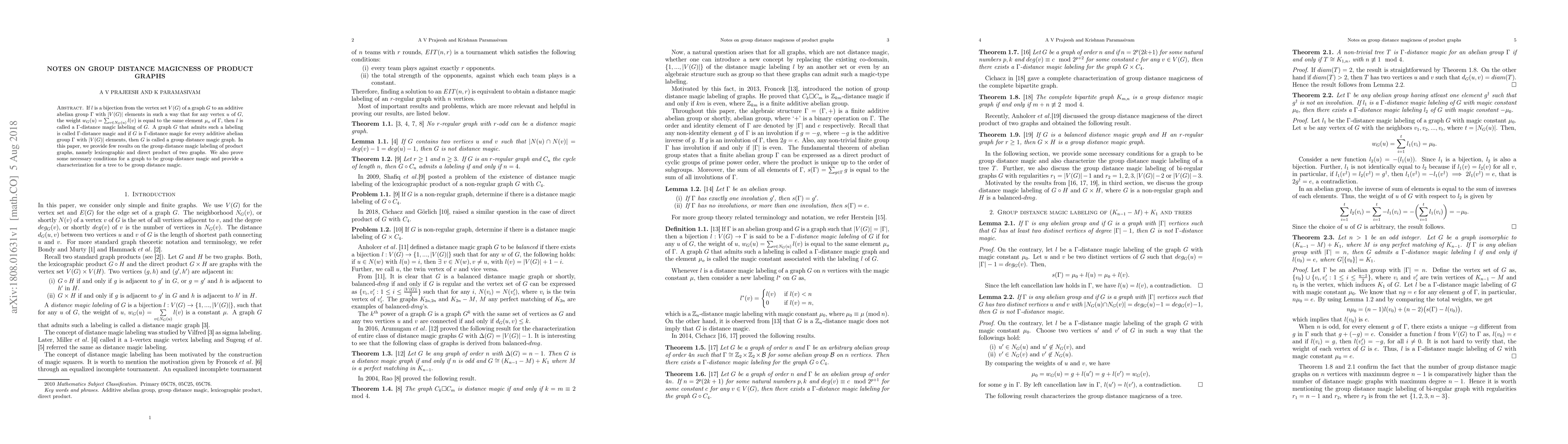 This paper investigates properties of product graphs related to group distance magic labeling, providing necessary conditions for graphs to be considered group distance magic and characterizing trees that meet this criterion.