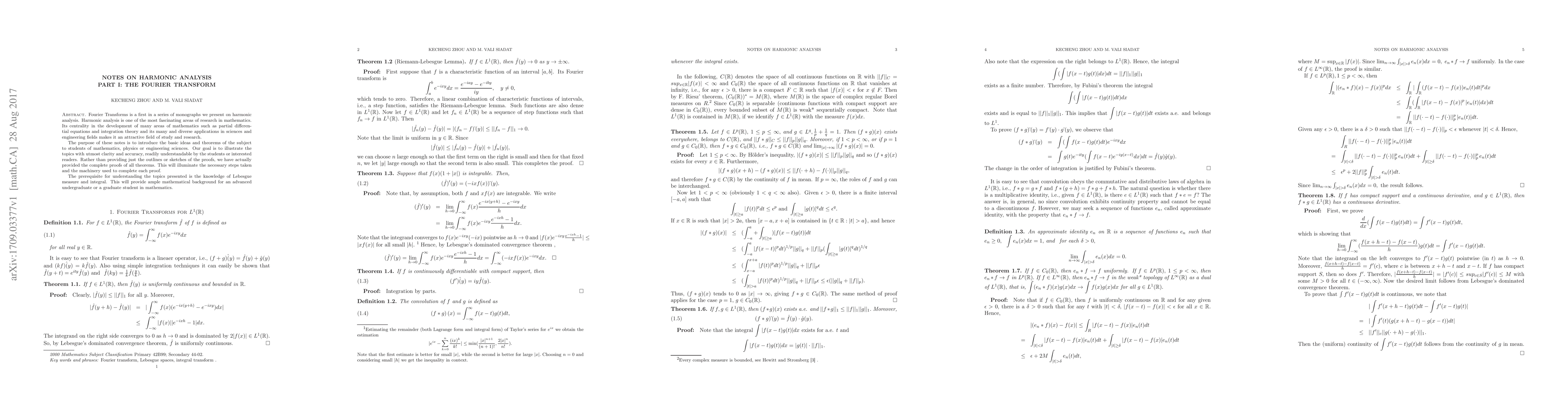 This paper introduces the Fourier Transform as part of a series on harmonic analysis, emphasizing its importance in mathematics, physics, and engineering. It provides complete proofs of theorems to enhance clarity and understanding, targeting advanced undergraduates and graduate students with a background in Lebesgue measure and integral.