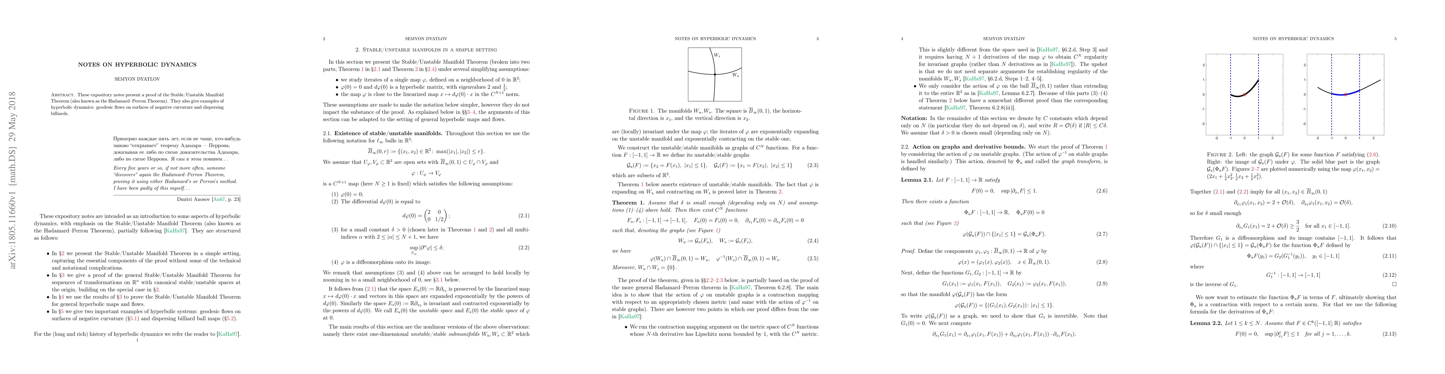 These expository notes present a proof of the Stable/Unstable Manifold Theorem (also known as the Hadamard--Perron Theorem). They also give examples of hyperbolic dynamics: geodesic flows on surfaces of negative curvature and dispersing billiards.