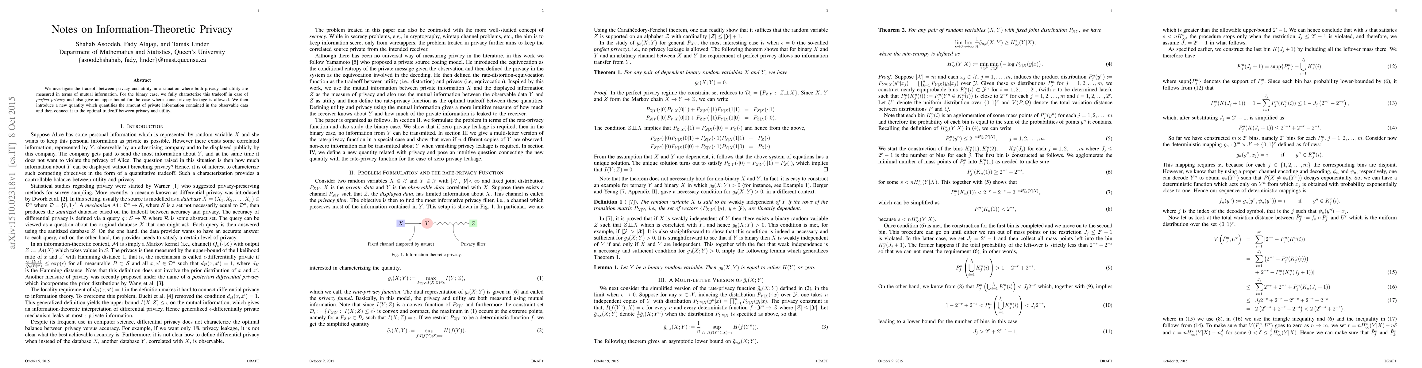We investigate the tradeoff between privacy and utility in a situation where both privacy and utility are measured in terms of mutual information. For the binary case, we fully characterize this tradeoff in case of perfect privacy and also give an upper-bound for the case where some privacy leakage is allowed. We then introduce a new quantity which quantifies the amount of private information contained in the observable data and then connect it to the optimal tradeoff between privacy and utility.
