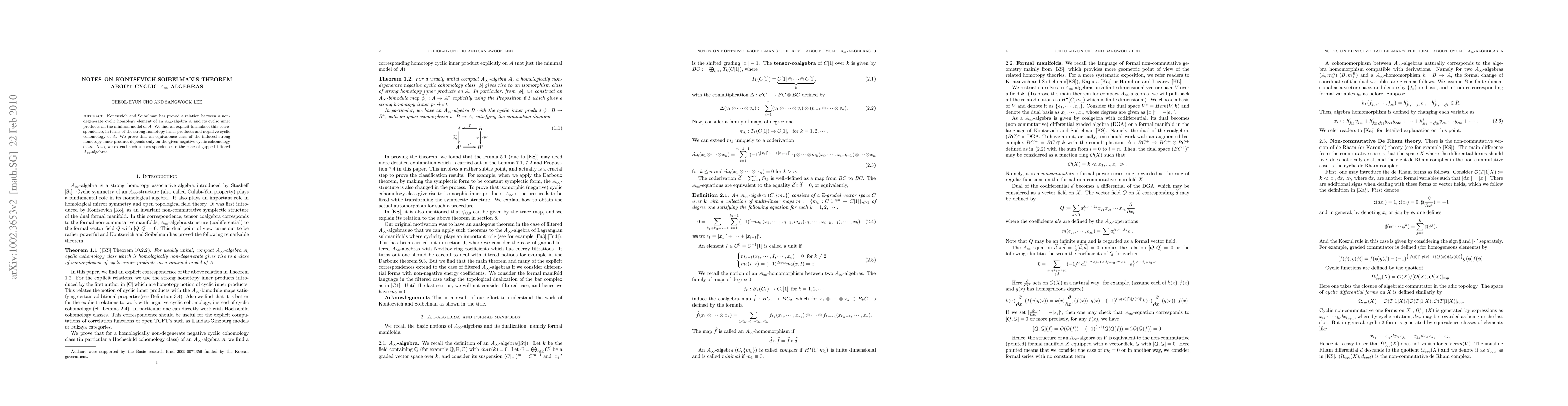 Summary: Kontsevich and Soibelman establish a connection between cyclic homology elements and cyclic inner products in A-infinity algebras, providing an explicit formula involving strong homotopy inner products and negative cyclic cohomology. The study extends this correspondence to gapped filtered A-infinity algebras.