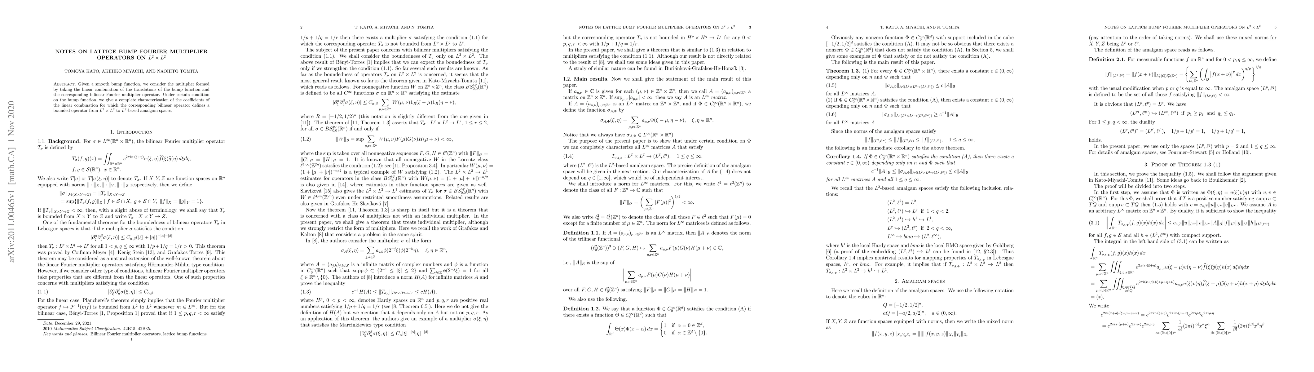 This paper studies lattice bump Fourier multiplier operators on L^2 x L^2, focusing on conditions for a linear combination to define a bounded operator from L^2 x L^2 to L^2-based amalgam spaces.