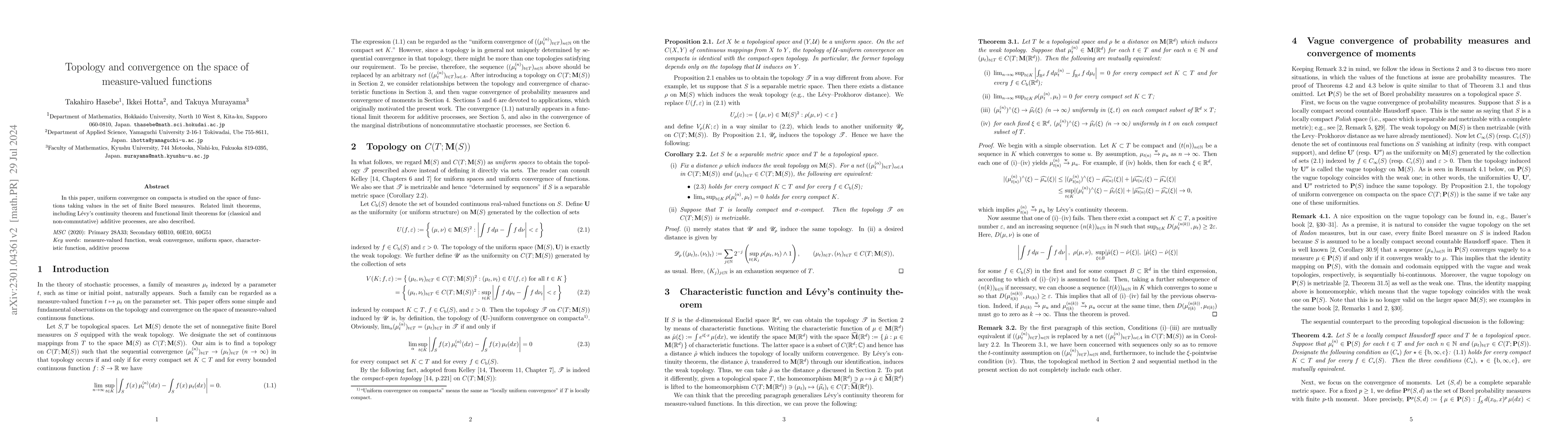 This paper concerns the locally uniform weak convergence of functions taking values in the space of finite Borel measures on a metric space. In particular, we establish a locally uniform version of L\'evy's continuity theorem for characteristic functions, assuming that the metric space is a Euclid space. As application, we show that the locally uniform weak convergence of the marginal distributions of additive processes characterizes the functional convergence of the processes.
