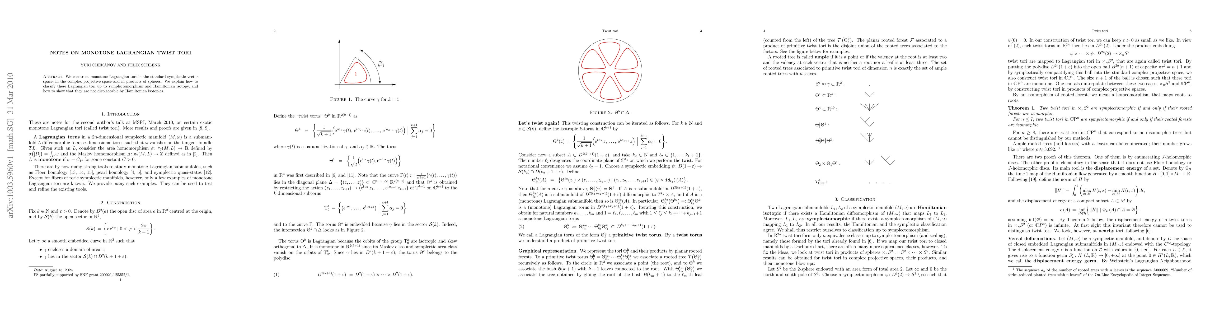 This paper constructs monotone Lagrangian tori in various symplectic spaces and classifies them up to symplectomorphism and Hamiltonian isotopy, demonstrating their non-displaceability by Hamiltonian isotopies. The study provides insights into the structure and behavior of these geometric objects in symplectic settings.