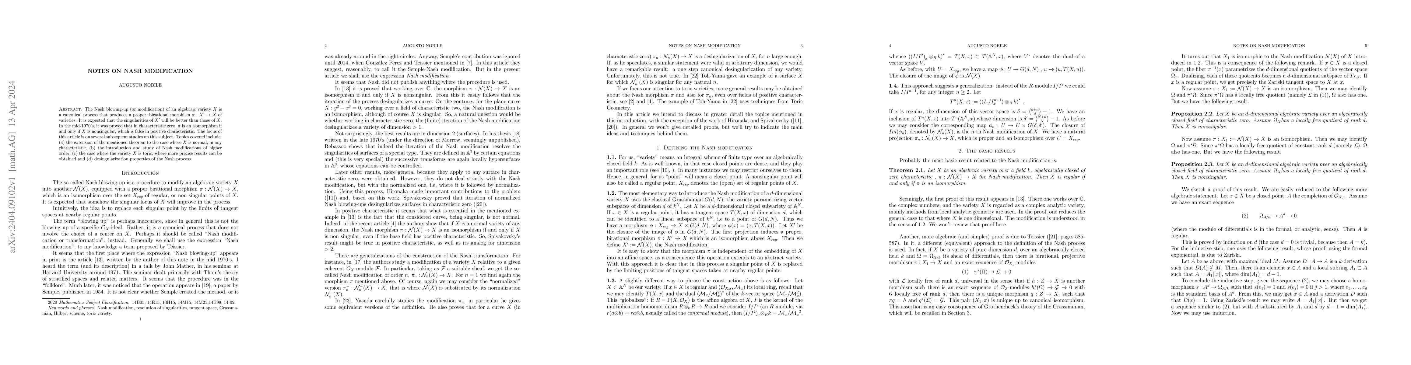 The Nash blowing-up (or modification) of an algebraic variety $X$ is a canonical process that produces a proper, birational morphism $\pi : X' \to X$ of varieties. It is expected that the singularities of $X'$ will be better than those of $X$. In the mid-1970's, it was proved that in characteristic zero, ${\pi}$ is an isomorphism if and only if $X$ is nonsingular, which is false in positive characteristic. The focus of this article is on several subsequent studies on this subject. Topics covered include: (a) the extension of the mentioned theorem to the case where $X$ is normal, in any characteristic, (b) the introduction and study of Nash modifications of higher order, (c) the case where the variety $X$ is toric, where more precise results can be obtained and (d) desingularization properties of the Nash process.
