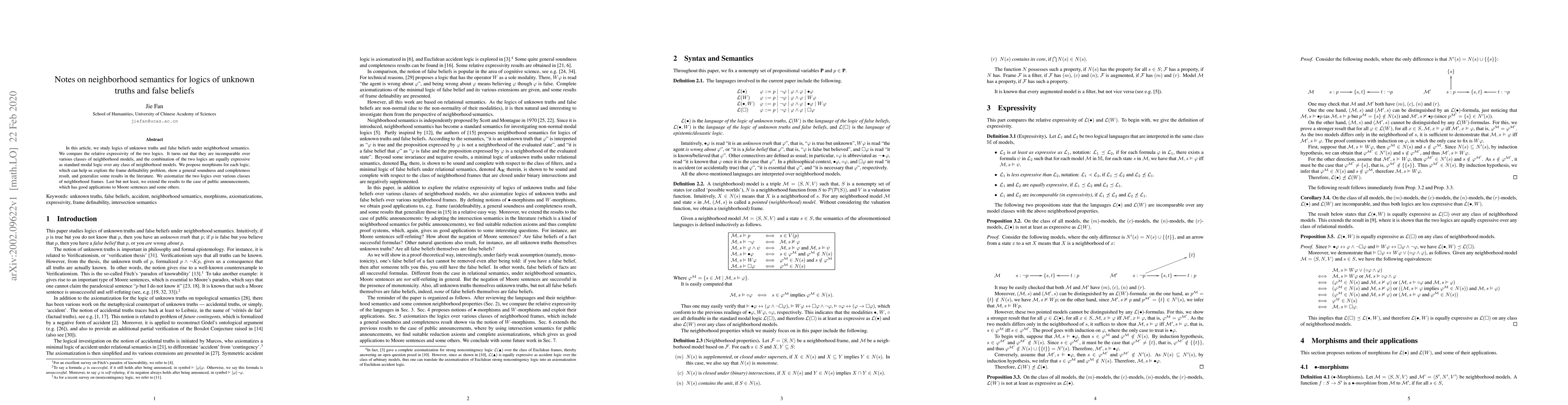 This paper examines logics of unknown truths and false beliefs through neighborhood semantics, finding they are incomparable yet collectively as expressive as standard modal logic. It proposes morphisms, axiomatizes the logics, and extends the findings to public announcements, with applications to Moore sentences.