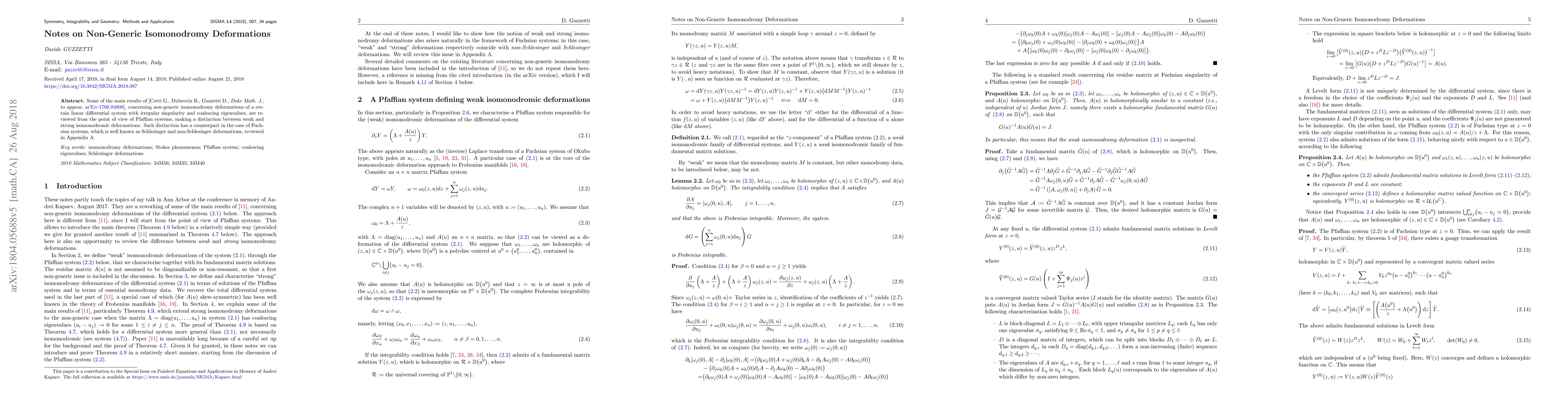 Some of the main results of [Cotti G., Dubrovin B., Guzzetti D., Duke Math. J., to appear, arXiv:1706.04808], concerning non-generic isomonodromy deformations of a certain linear differential system with irregular singularity and coalescing eigenvalues, are reviewed from the point of view of Pfaffian systems, making a distinction between weak and strong isomonodromic deformations. Such distinction has a counterpart in the case of Fuchsian systems, which is well known as Schlesinger and non-Schlesinger deformations, reviewed in Appendix A.