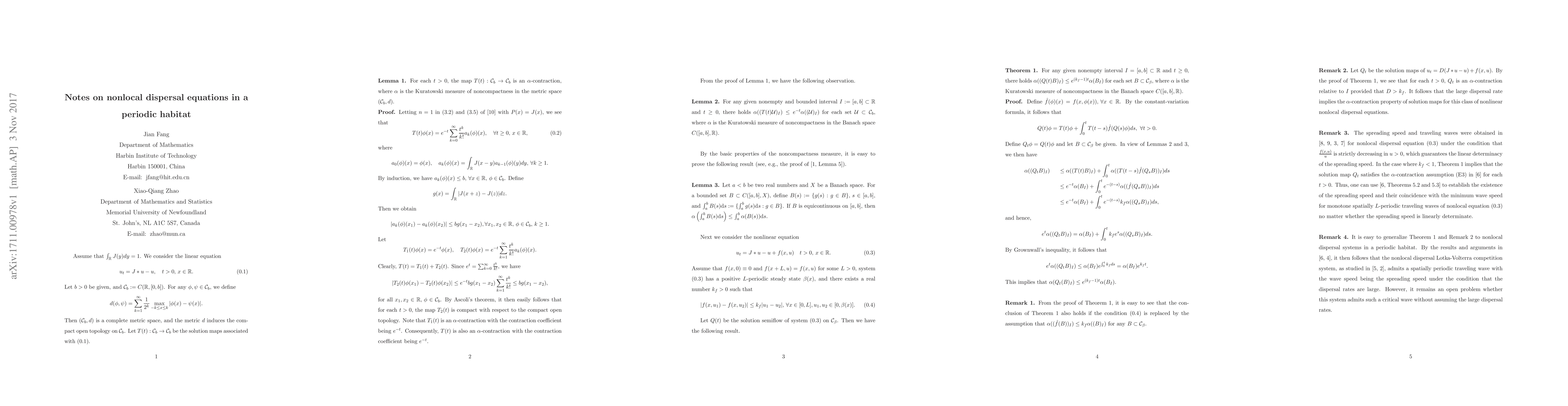 Researchers prove that a wide class of nonlocal dispersal equations have solution maps that are α-contractive, with implications for understanding spreading speeds and traveling waves in periodic habitats.