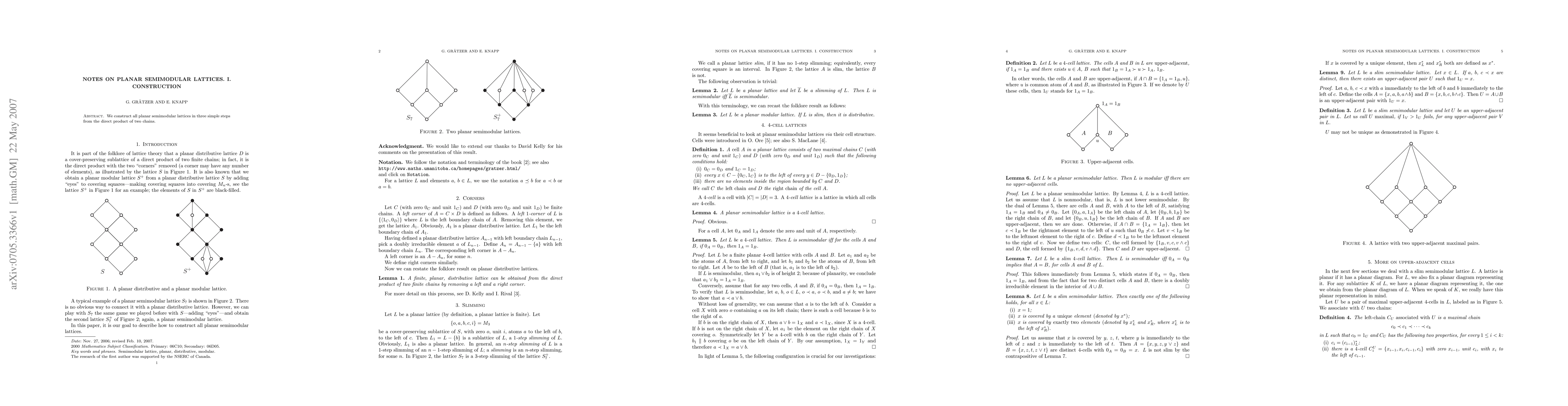 Summary: This paper constructs all planar semimodular lattices through a systematic process involving three simple steps derived from the direct product of two chains. The methodology provides a comprehensive framework for understanding these lattice structures.