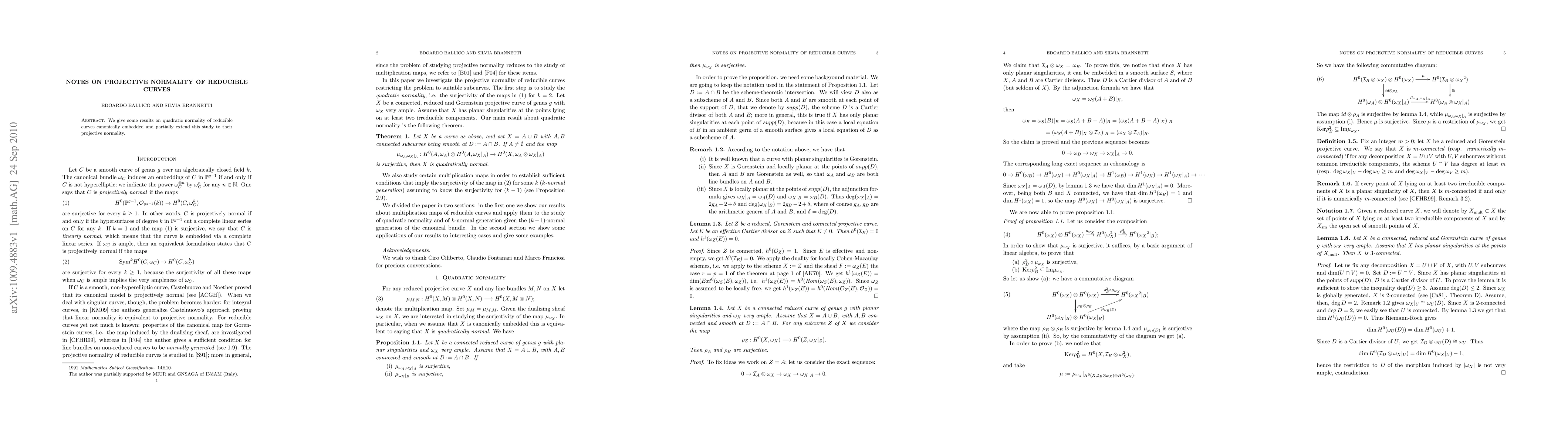 This paper discusses the quadratic normality of reducible curves embedded canonically and extends these findings to explore their projective normality, providing new insights into their geometric properties.