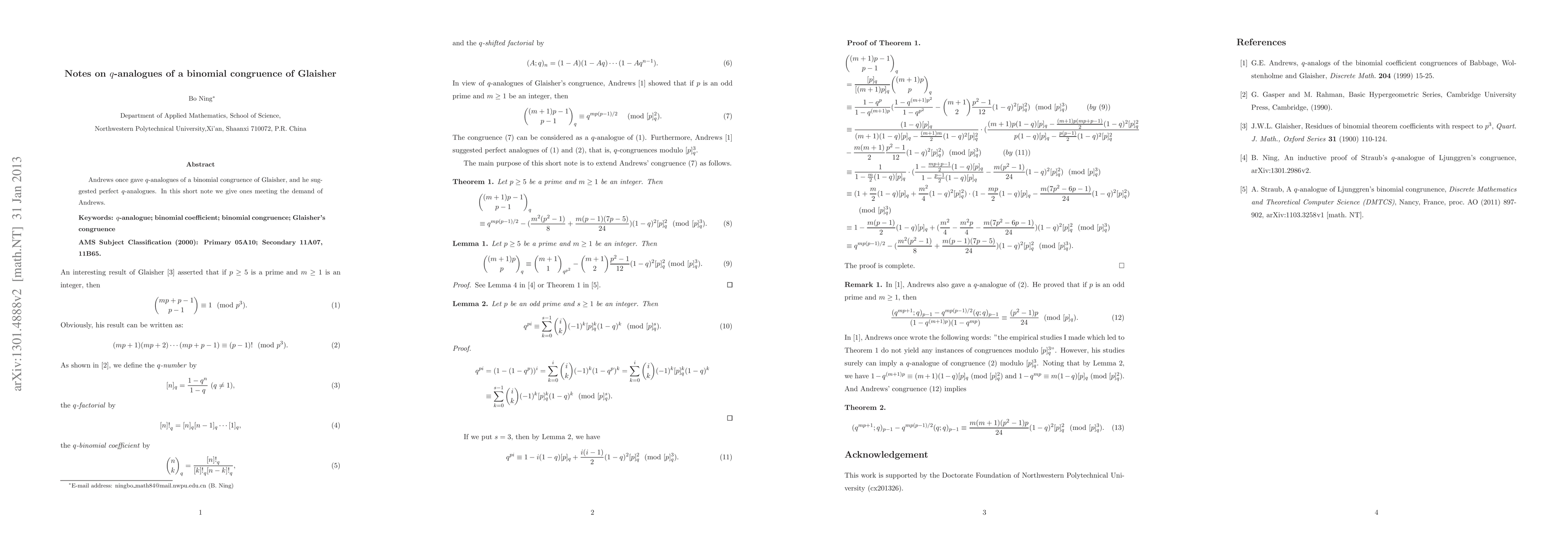Researchers provide $q$-analogues of a binomial congruence of Glaisher, meeting Andrews' demand for perfect analogues, advancing knowledge in combinatorial mathematics.