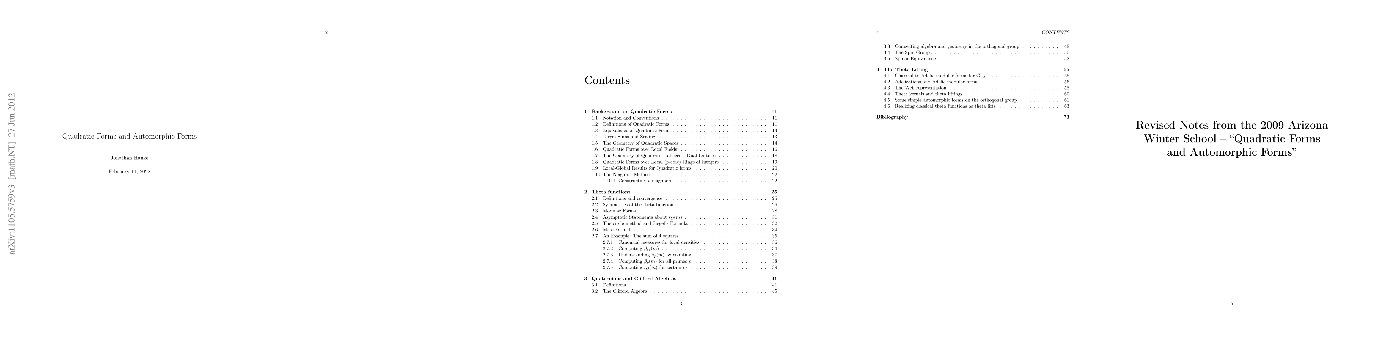 Summary: These notes provide an extended survey of the classical theory of quadratic forms over number fields, focusing on their connections with modular and automorphic forms, based on a graduate-level course from the 2009 Arizona Winter School. They explore quadratic forms over rational numbers and their integer rings.
