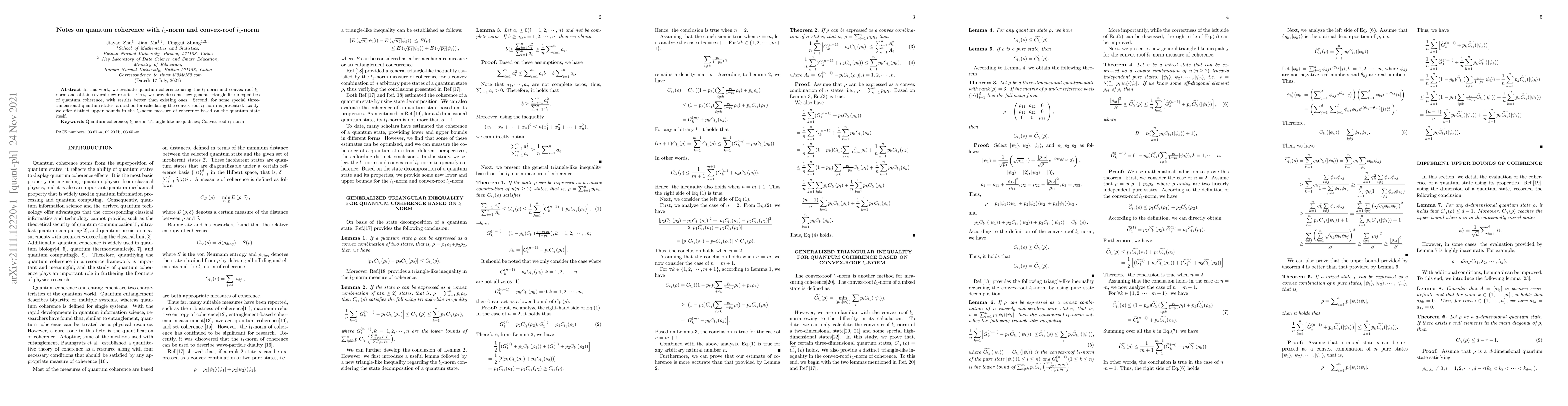 This paper evaluates quantum coherence using the l_1-norm and convex-roof l_1-norm, presenting new triangle-like inequalities and a method for calculating the convex-roof l_1-norm for specific three-dimensional quantum states, along with distinct upper bounds for coherence based on the quantum state.