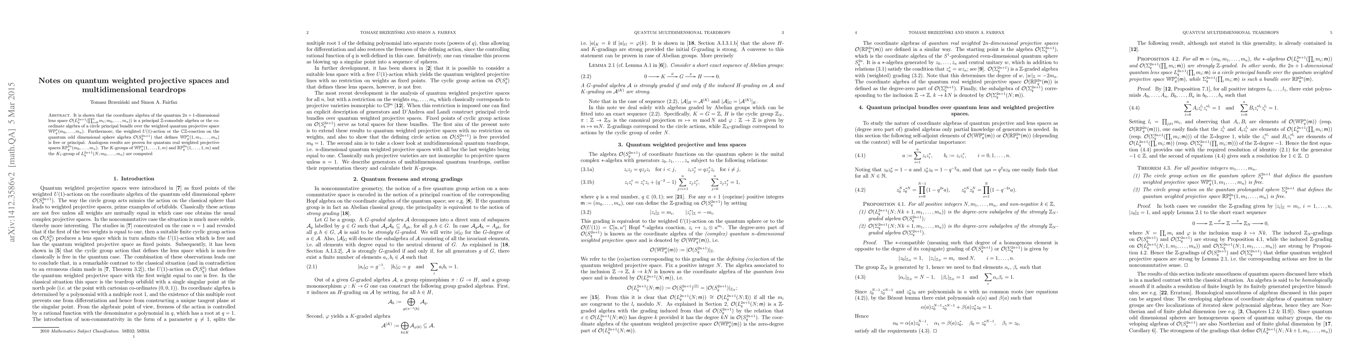 It is shown that the coordinate algebra of the quantum $2n+1$-dimensional lens space $\mathcal{O}(L^{2n+1}_q(\prod_{i=0}^n m_i; m_0,\ldots, m_n))$ is a principal $\mathbb{Z}$-comodule algebra or the coordinate algebra of a circle principal bundle over the weighted quantum projective space $\mathbb{WP}^n_q(m_0,\ldots, m_n)$. Furthermore, the weighted $U(1)$-action or the $\mathbb{CZ}$-coaction on the quantum odd dimensional sphere algebra $\mathcal{O}(S^{2n+1}_q)$ that defines $\mathbb{WP}^n_q(1,m_1,\ldots, m_n)$ is free or principal. Analogous results are proven for quantum real weighted projective spaces $\mathbb{RP}^{2n}_q(m_0,\ldots, m_n)$. The $K$-groups of $\mathbb{WP}^n_q(1,\ldots, 1, m)$ and $\mathbb{RP}^{2n}_q(1,\ldots, 1,m)$ and the $K_1$-group of $L^{2n+1}_q(N; m_0,\ldots, m_n)$ are computed