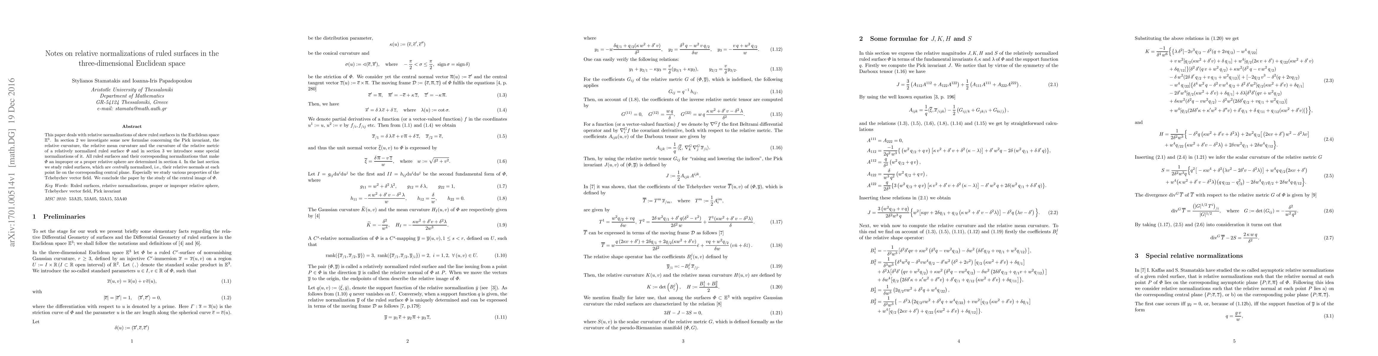 This paper explores the relative normalizations of skew ruled surfaces in $\mathbb{E}^{3}$, introducing new formulae for the Pick invariant and curvatures, and determining normalizations that render the surface an improper or proper relative sphere. It also examines centrally normalized ruled surfaces and the properties of the Tchebychev vector field.