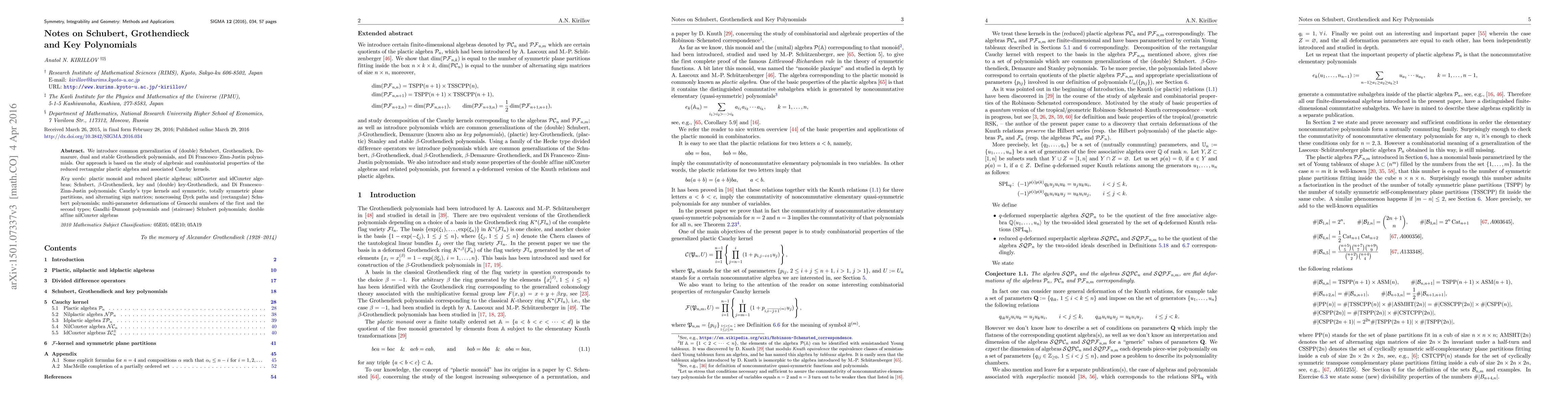 This paper introduces common generalizations of Schubert, Grothendieck, and other polynomials through the study of reduced rectangular plactic algebra and Cauchy kernels, providing a new approach to understanding their algebraic and combinatorial properties.