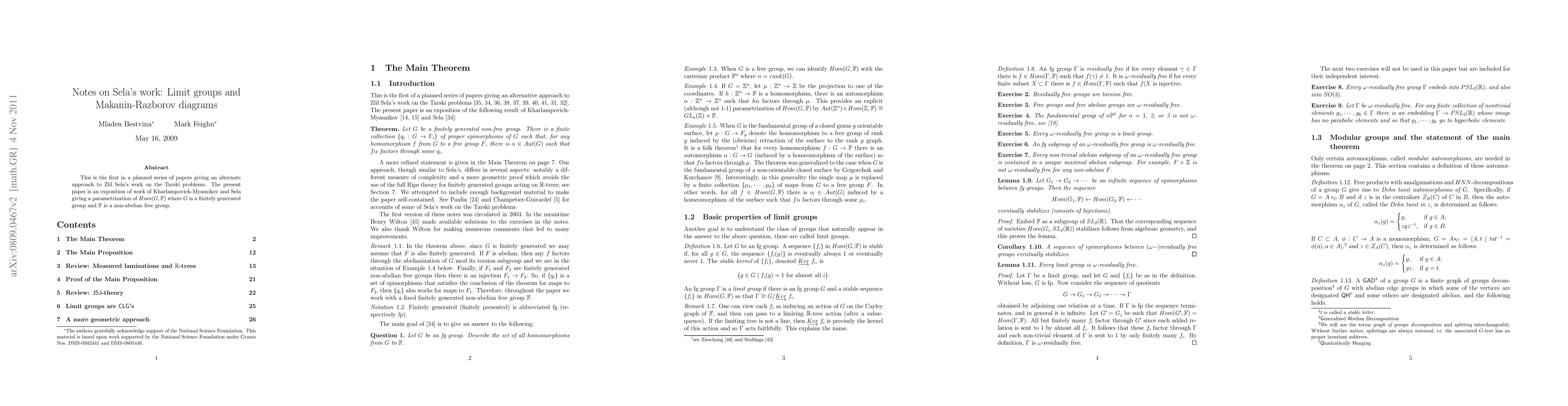 This is the first in a planned series of papers giving an alternate approach to Zlil Sela's work on the Tarski problems. The present paper is an exposition of work of Kharlampovich-Myasnikov and Sela giving a parametrization of Hom(G,F) where G is a finitely generated group and F is a non-abelian free group.