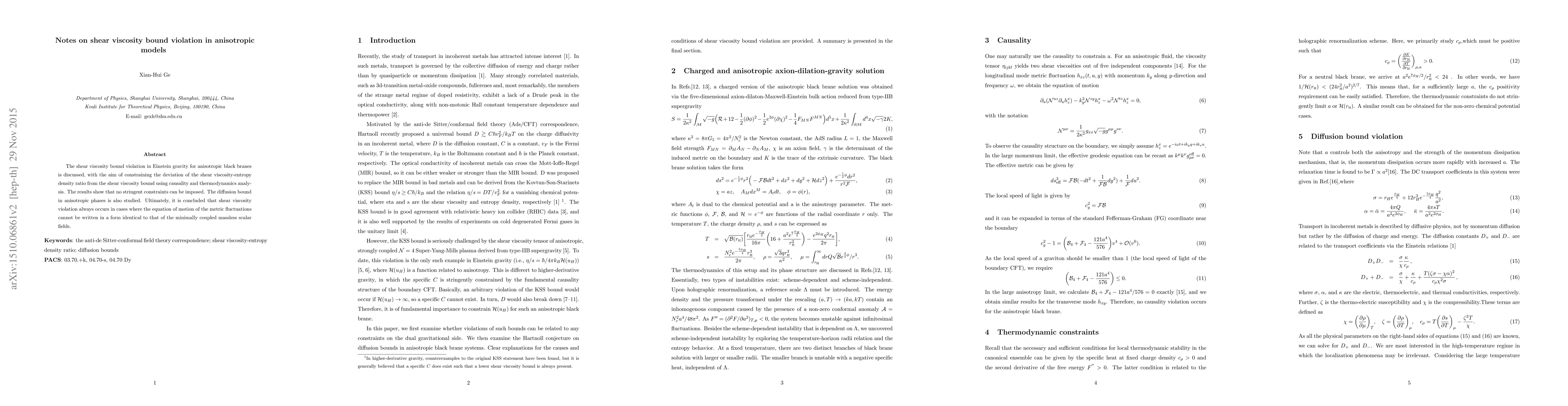 This paper investigates the violation of the shear viscosity bound in anisotropic black branes within Einstein gravity, finding no stringent constraints through causality and thermodynamics analysis. It concludes that shear viscosity violation is inevitable when the metric fluctuations' equations of motion differ from those of minimally coupled massless scalar fields.