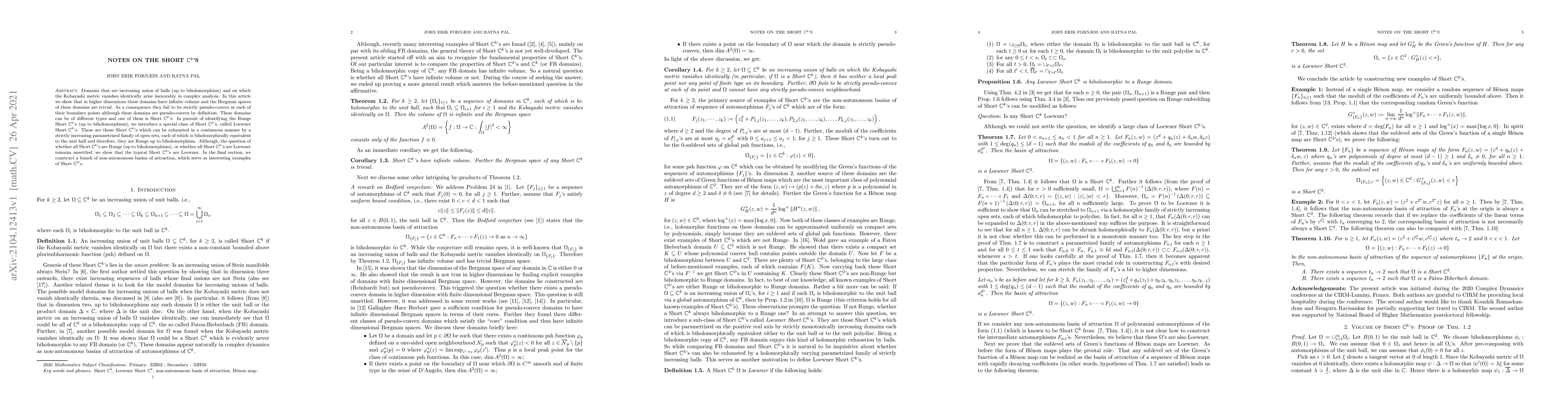 The paper introduces Loewner Short $\mathbb{C}^k$'s and demonstrates their properties, providing a deeper understanding of the structure of certain complex domains.