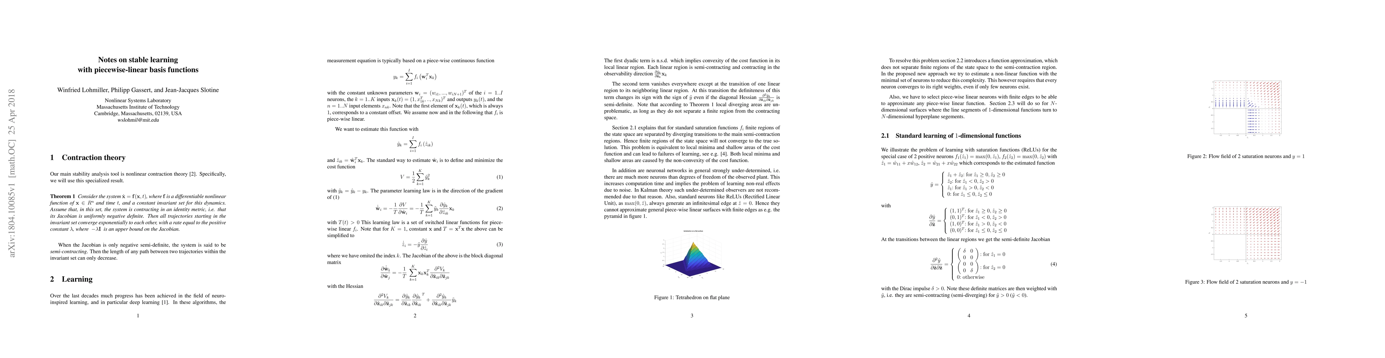 We discuss technical results on learning function approximations using piecewise-linear basis functions, and analyze their stability and convergence using nonlinear contraction theory.