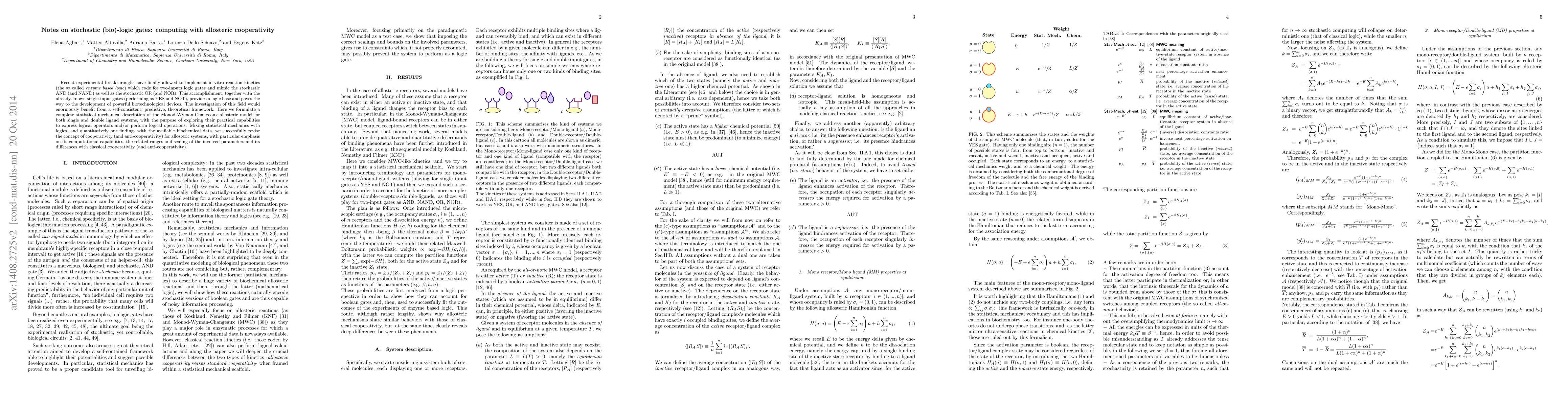 Recent experimental breakthroughs have finally allowed to implement in-vitro reaction kinetics (the so called {\em enzyme based logic}) which code for two-inputs logic gates and mimic the stochastic AND (and NAND) as well as the stochastic OR (and NOR). This accomplishment, together with the already-known single-input gates (performing as YES and NOT), provides a logic base and paves the way to the development of powerful biotechnological devices. The investigation of this field would enormously benefit from a self-consistent, predictive, theoretical framework. Here we formulate a complete statistical mechanical description of the Monod-Wyman-Changeaux allosteric model for both single and double ligand systems, with the purpose of exploring their practical capabilities to express logical operators and/or perform logical operations. Mixing statistical mechanics with logics, and quantitatively our findings with the available biochemical data, we successfully revise the concept of cooperativity (and anti-cooperativity) for allosteric systems, with particular emphasis on its computational capabilities, the related ranges and scaling of the involved parameters and its differences with classical cooperativity (and anti-cooperativity).