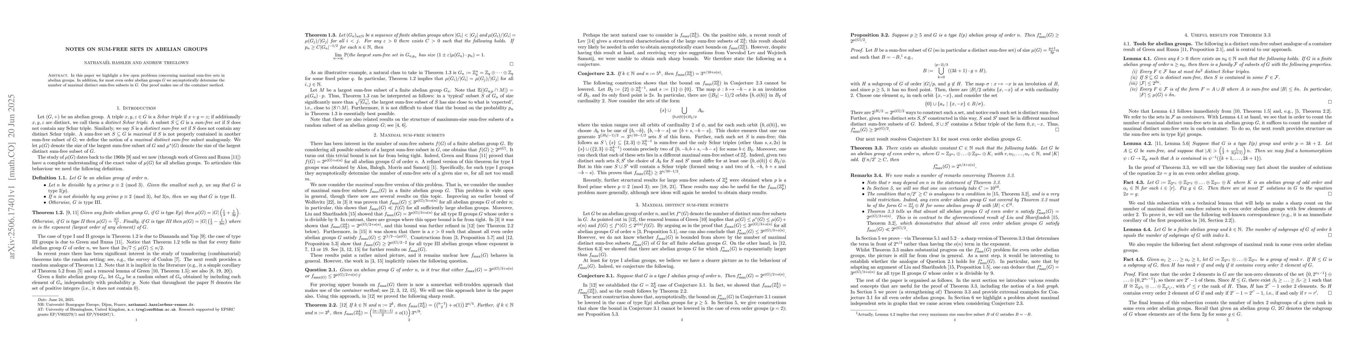 In this paper we highlight a few open problems concerning maximal sum-free sets in abelian groups. In addition, for most even order abelian groups $G$ we asymptotically determine the number of maximal distinct sum-free subsets in $G$. Our proof makes use of the container method.
