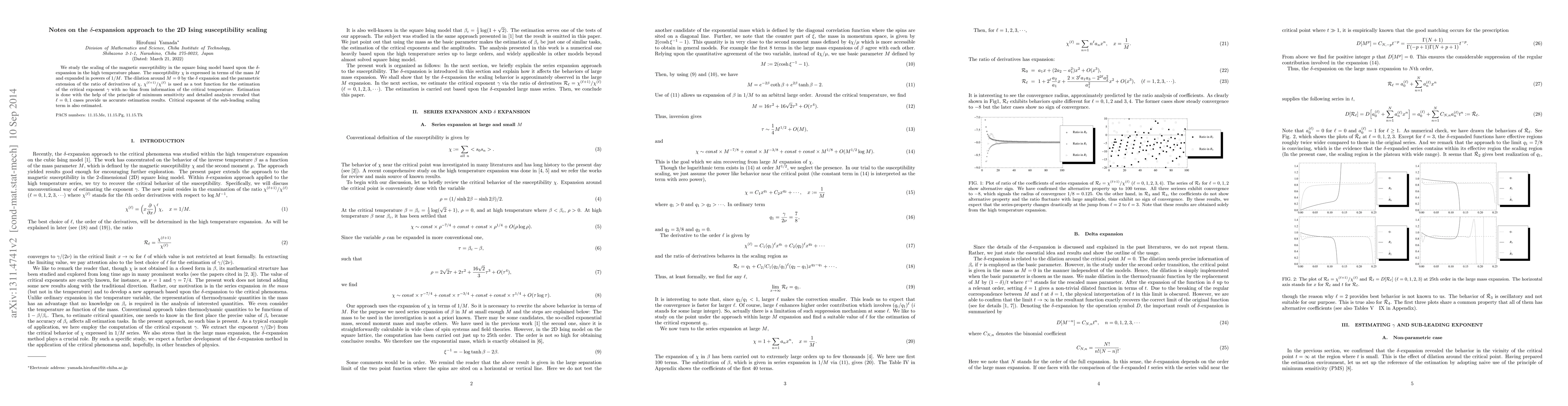 This paper investigates the scaling behavior of the magnetic susceptibility in the 2D Ising model using the delta-expansion method in the high temperature phase. The study estimates the critical exponent gamma and the sub-leading scaling term without relying on critical temperature information, achieving accurate results for ell=0,1 cases.