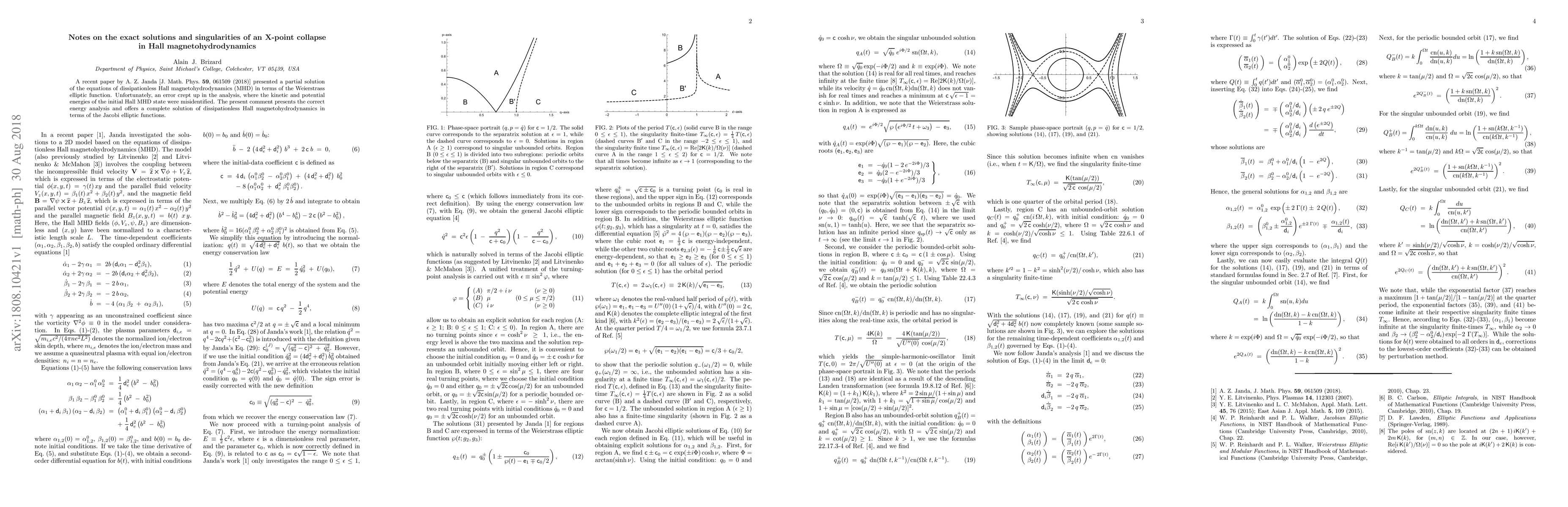 A recent paper by A.~Z.~Janda [J.~Math.~Phys.~{\bf 59}, 061509 (2018)] presented a partial solution of the equations of dissipationless Hall magnetohydrodynamics (MHD) in terms of the Weierstrass elliptic function. Unfortunately, an error crept up in the analysis, where the kinetic and potential energies of the initial Hall MHD state were misidentified. The present comment presents the correct energy analysis and offers a complete solution of dissipationless Hall magnetohydrodynamics in terms of the Jacobi elliptic functions.