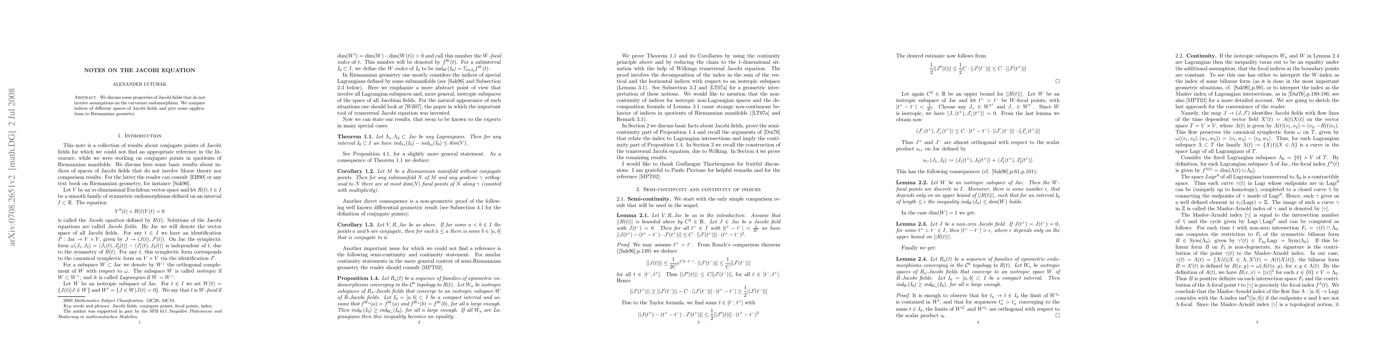 We discuss some properties of Jacobi fields that do not involve assumptions on the curvature endomorphism. We compare indices of different spaces of Jacobi fields and give some applications to Riemannian geometry.