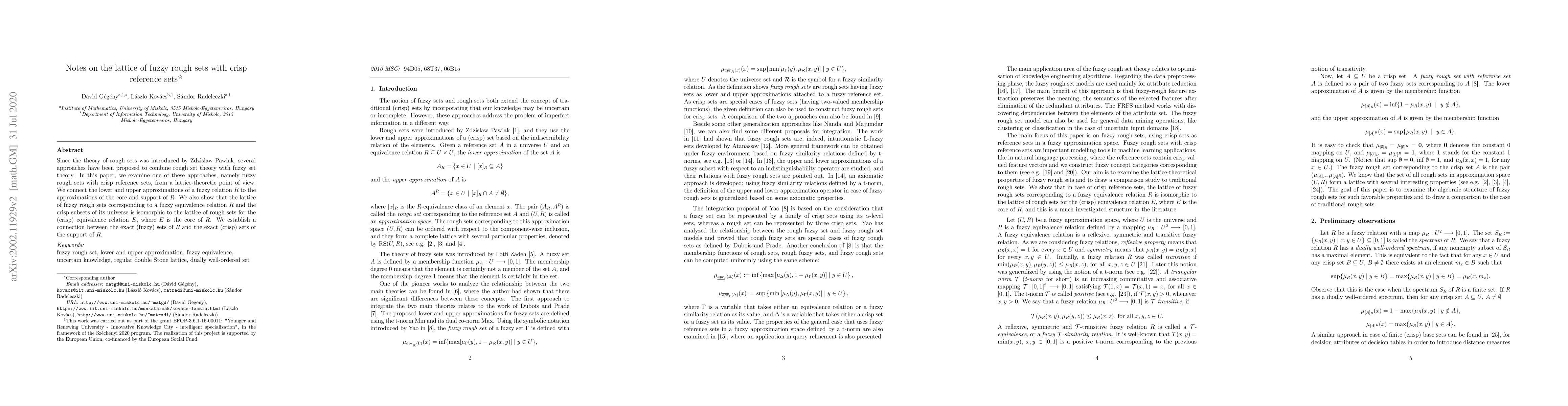 Since the theory of rough sets was introduced by Zdzislaw Pawlak, several approaches have been proposed to combine rough set theory with fuzzy set theory. In this paper, we examine one of these approaches, namely fuzzy rough sets with crisp reference sets, from a lattice-theoretic point of view. We connect the lower and upper approximations of a fuzzy relation $R$ to the approximations of the core and support of $R$. We also show that the lattice of fuzzy rough sets corresponding to a fuzzy equivalence relation $R$ and the crisp subsets of its universe is isomorphic to the lattice of rough sets for the (crisp) equivalence relation $E$, where $E$ is the core of $R$. We establish a connection between the exact (fuzzy) sets of $R$ and the exact (crisp) sets of the support of $R$.