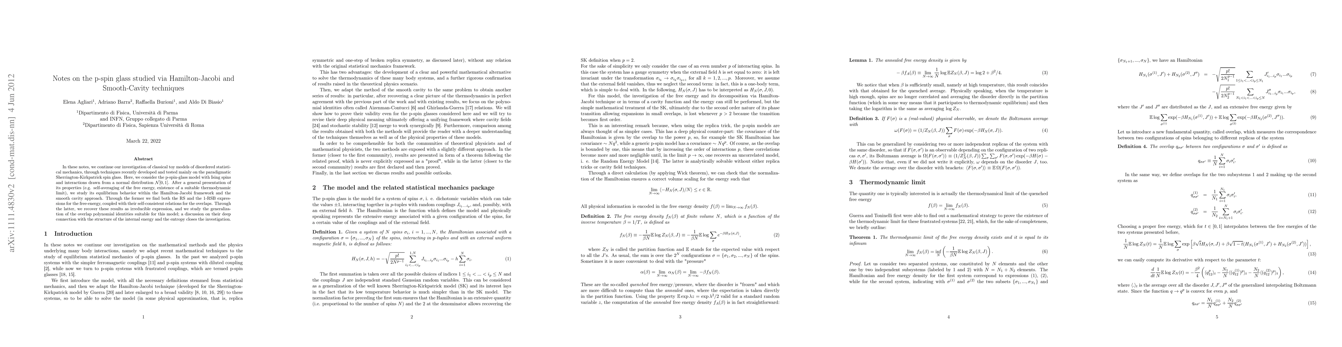In these notes, we continue our investigation of classical toy models of disordered statistical mechanics through various techniques recently developed and tested mainly on the paradigmatic SK spin glass. Here we consider the p-spin-glass model with Ising spins and interactions drawn from a normal distribution N[0,1]. After a general presentation of its properties (e.g. self-averaging of the free energy, existence of a suitable thermodynamic limit), we study its equilibrium behavior within the Hamilton-Jacobi framework and the smooth cavity approach. Through the former we find both the RS and the 1RSB expressions for the free energy, coupled with their self-consistent relations for the overlaps. Through the latter, we recover these results as irreducible expression, and we study the generalization of the overlap polynomial identities suitable for this model; a discussion on their deep connection with the structure of the internal energy and the entropy closes the investigation.