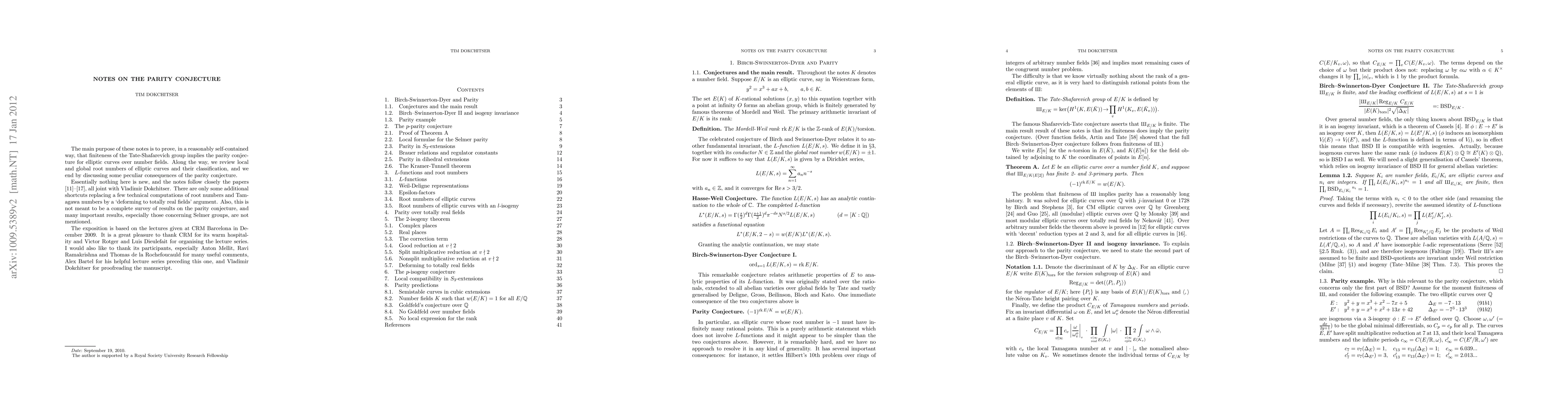 This paper proves that finiteness of the Tate-Shafarevich group leads to the parity conjecture for elliptic curves over number fields. It reviews local and global root numbers, classifying them, and discusses implications of the parity conjecture.