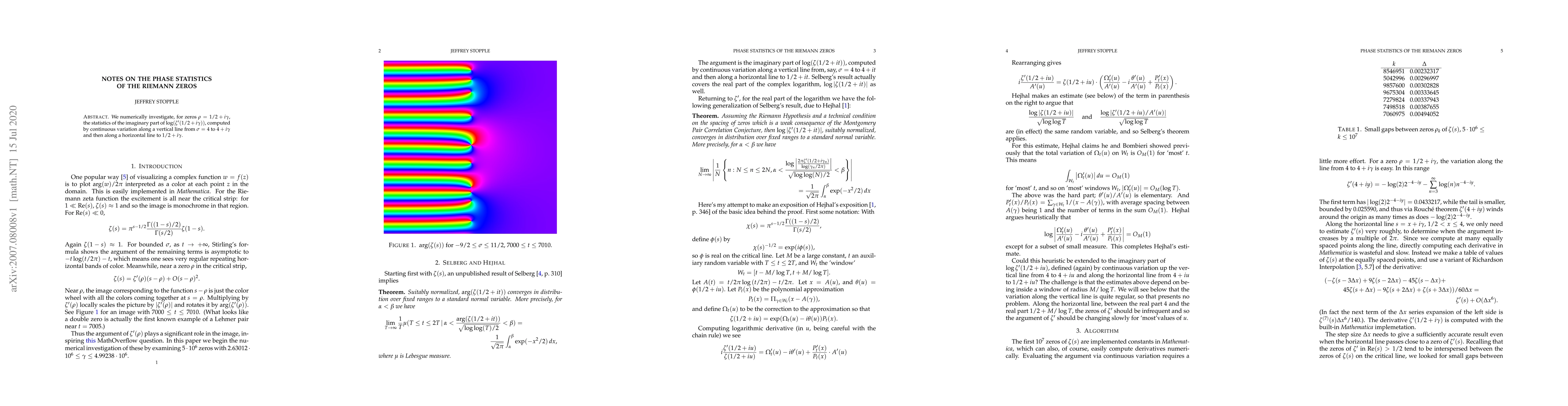 We numerically investigate, for zeros $\rho=1/2+i\gamma$, the statistics of the imaginary part of $\log(\zeta^\prime(1/2+i\gamma))$, computed by continuous variation along a vertical line from $\sigma=4$ to $4+i\gamma$ and then along a horizontal line to $1/2+i\gamma$.