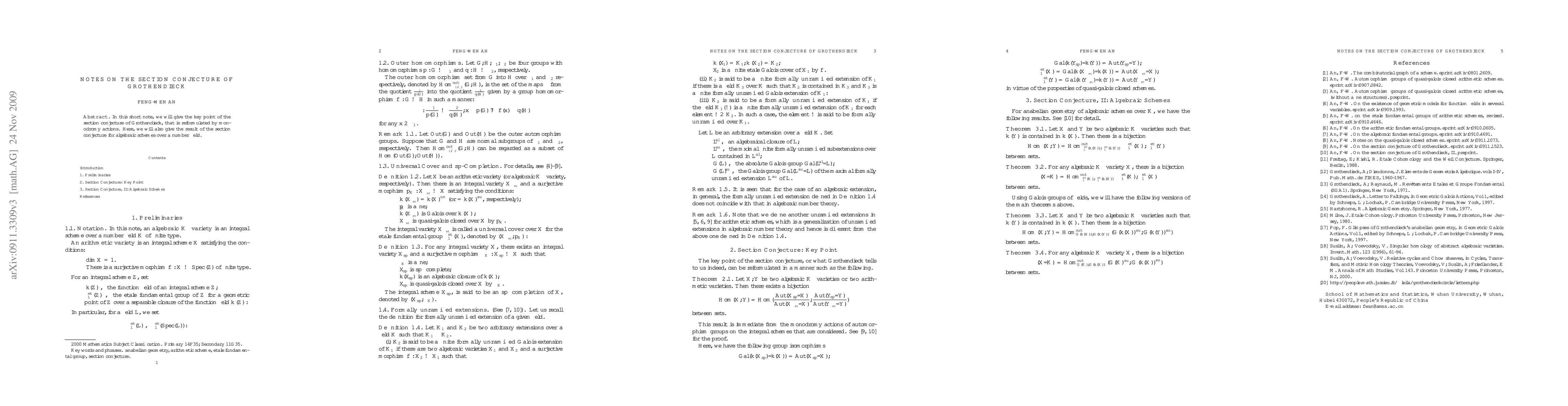In this short note, we will give the key point of the section conjecture of Grothendieck, that is reformulated by monodromy actions. Here, we will also give the result of the section conjecture for algebraic schemes over a number field.