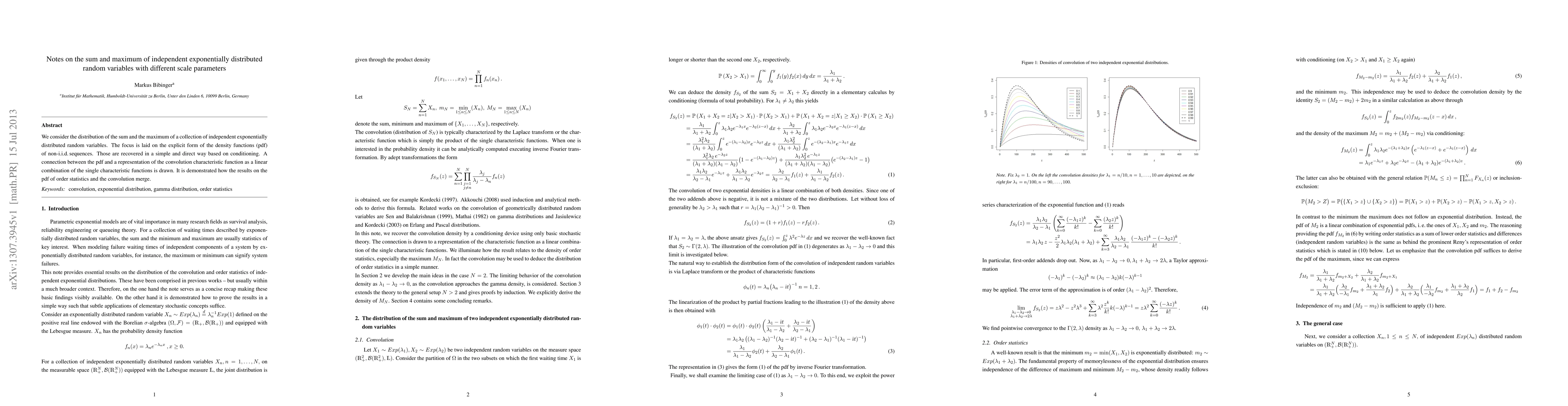 This paper presents a method to find the explicit density functions of sums and maxima of independent exponentially distributed random variables with varying scale parameters. It links these density functions to a representation of convolution characteristic functions, and shows how results on order statistics' densities and convolutions interconnect.
