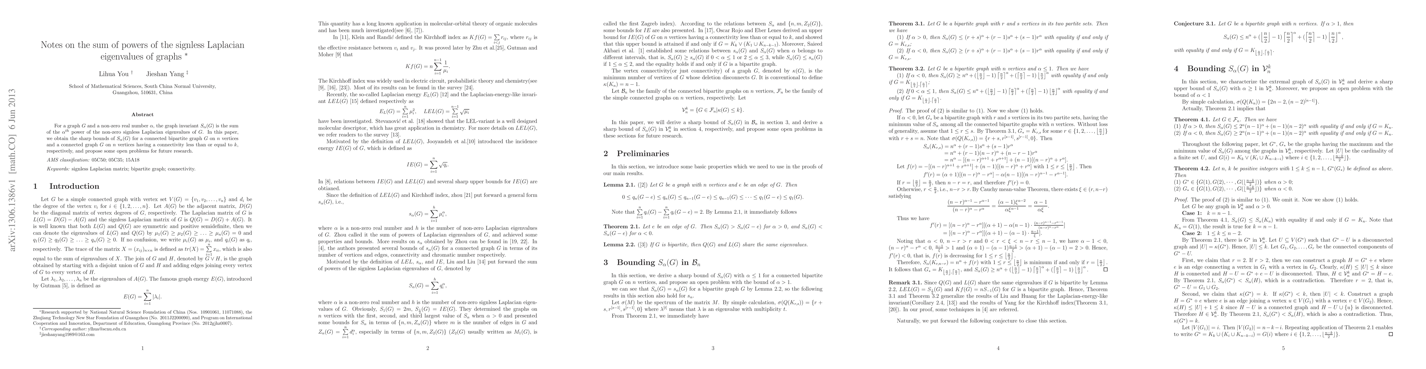 For a graph $G$ and a non-zero real number $\alpha$, the graph invariant $S_{\alpha}(G)$ is the sum of the $\alpha^{th}$ power of the non-zero signless Laplacian eigenvalues of $G$. In this paper, we obtain the sharp bounds of $S_{\alpha}(G)$ for a connected bipartite graph $G$ on $n$ vertices and a connected graph $G$ on $n$ vertices having a connectivity less than or equal to $k$, respectively, and propose some open problems for future research.